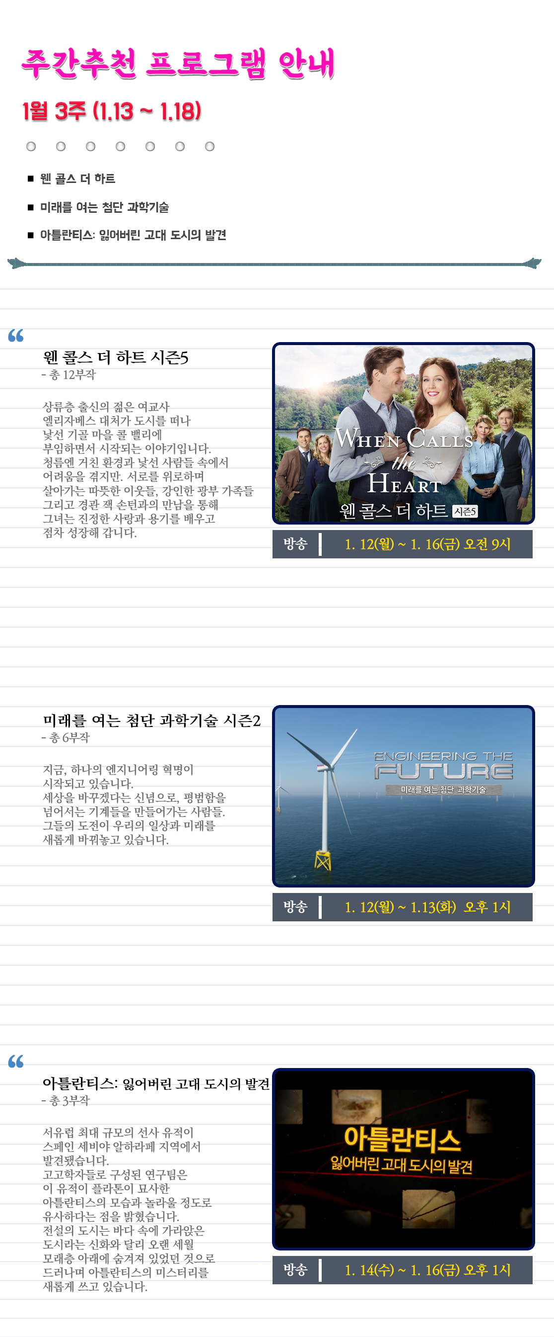 <웬 콜스 더 하트>는 사랑과 믿음, 그리고 공동체의 소중함을 일깨우는 감동적인 힐링 드라마입니다.