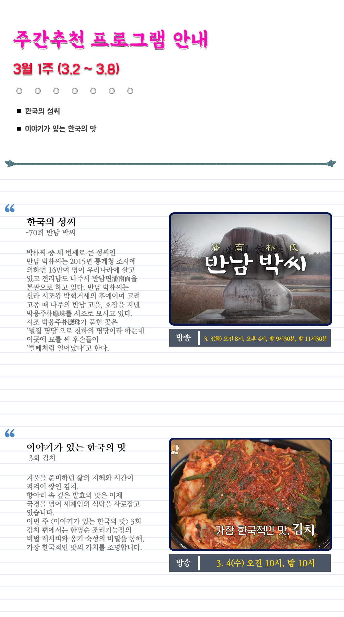 이번 주 〈이야기가 있는 한국의 맛〉 3회 김치 편에서는 한명순 조리기능장의 비법 레시피와